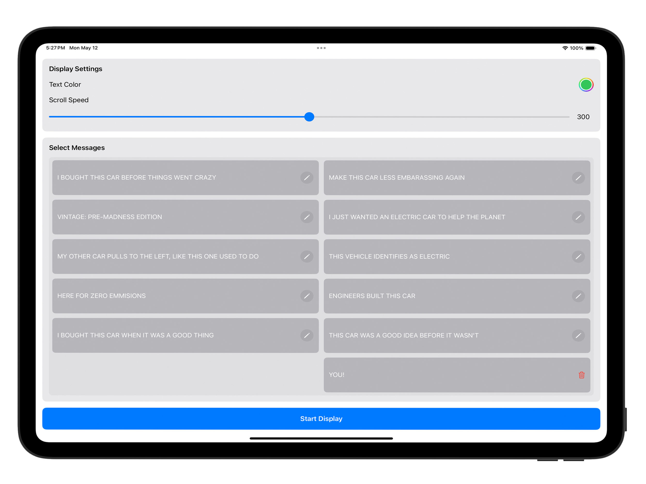 • Looped Messages: Choose from a library of rotating, pre-written quips and snarky comments.
